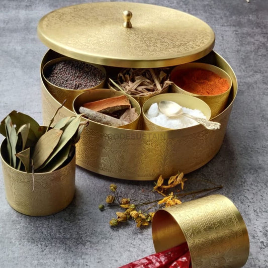 Handmade Brass Large Masala Box | Spice Box | 8 inches with gift box