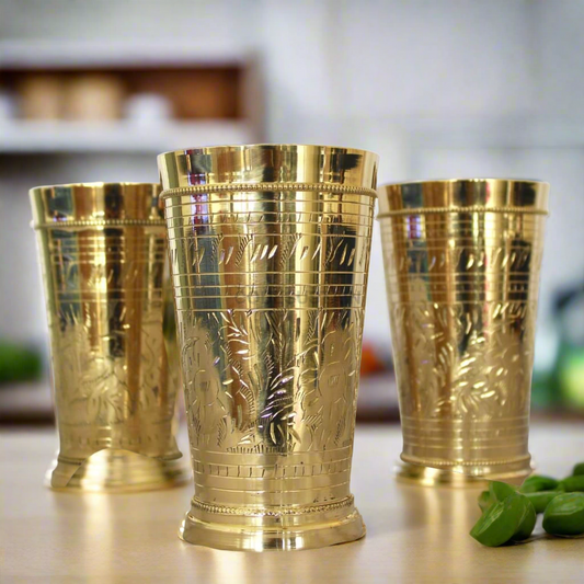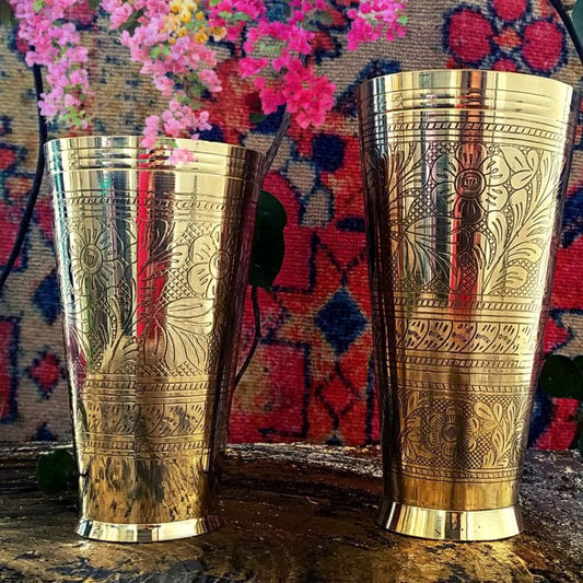 Handmade Engraved Brass Patiala Glass | Pital Lassi Glass