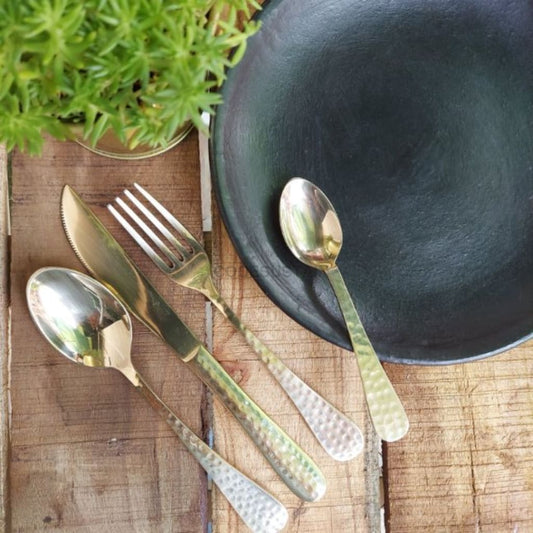 Handmade Embossed Brass Cutlery Set (4 pieces)