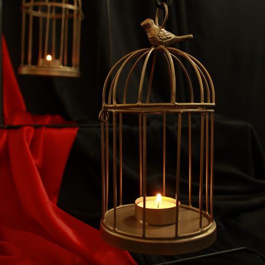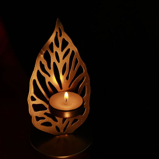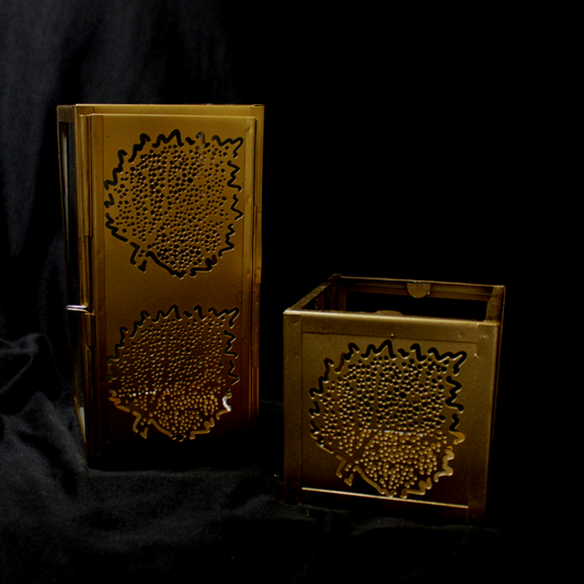 Antique Gold - Leaf Print Candle Holder Lantern (Set of 2)