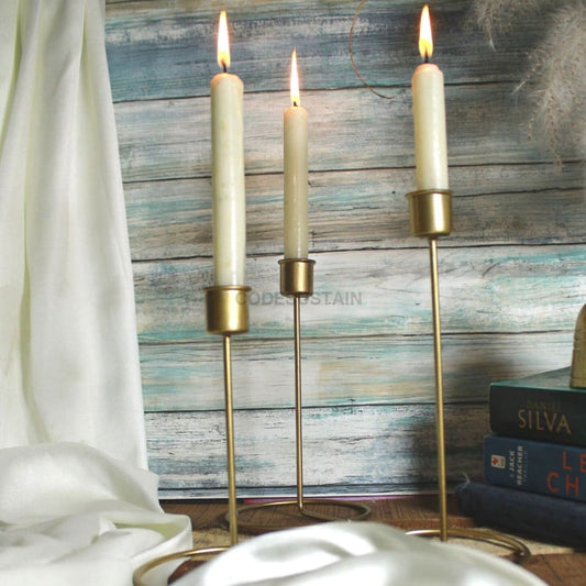 Large Vintage Gold Candle Holders | Table Centerpiece (Set of 3)