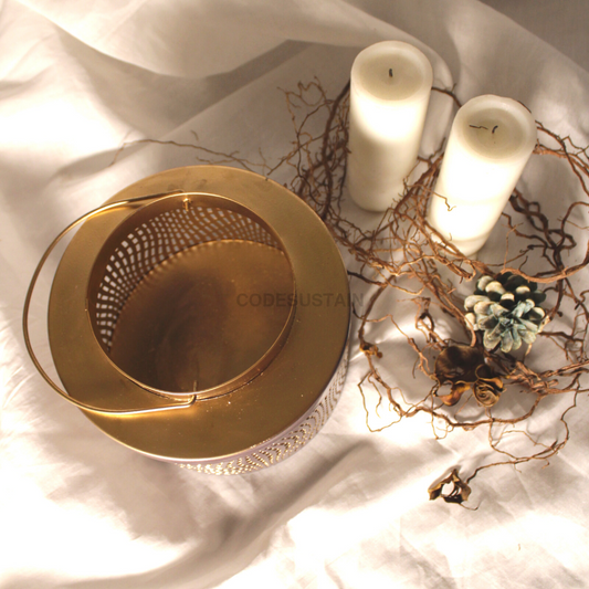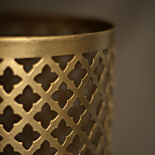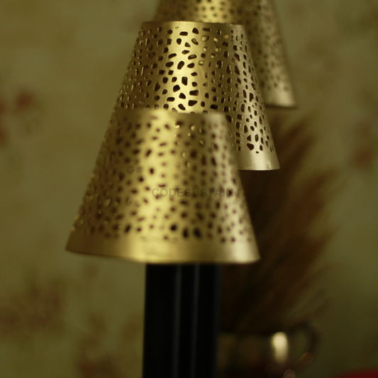 Dark Night Gold Metal Flower Pattern Candle Stand || Set of 3
