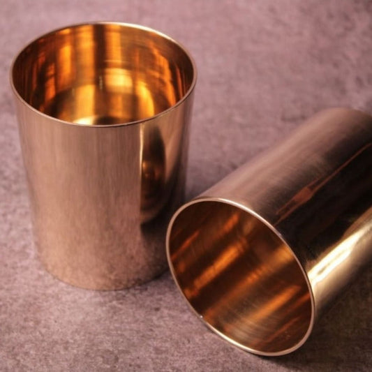 Golden Bronze Glass Set | Kansa Glasses (Set of 2) with gift box