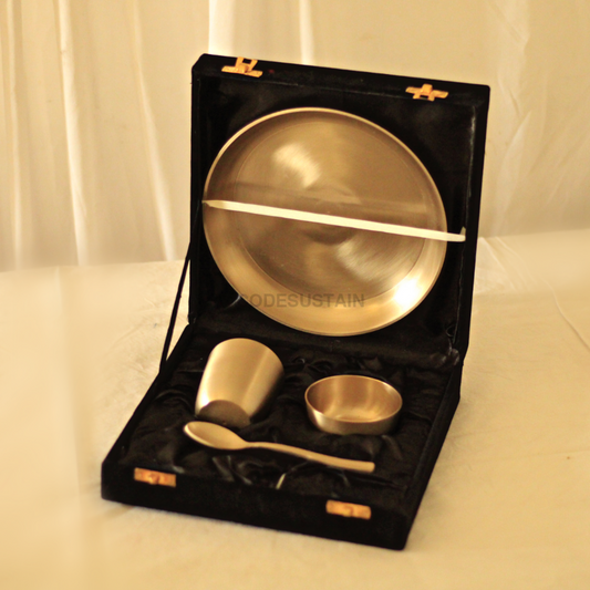 Modern Kansa Thali Set | Contemporary Bronze Dinner Set with Gift box