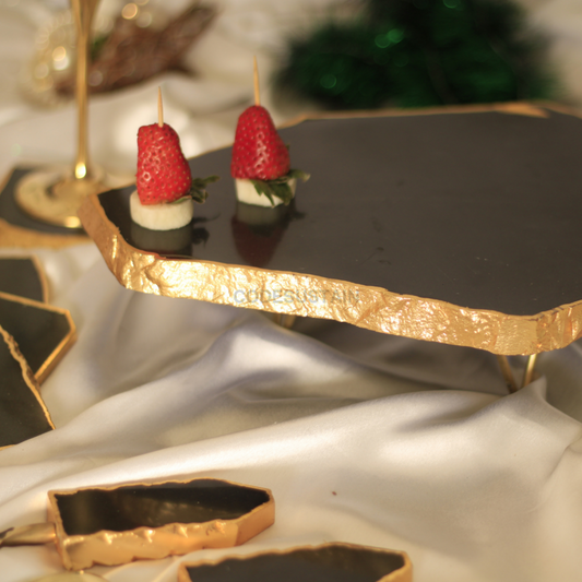 Handmade Agate Gold Cake Platter | Agate Cheese Platter With Stand