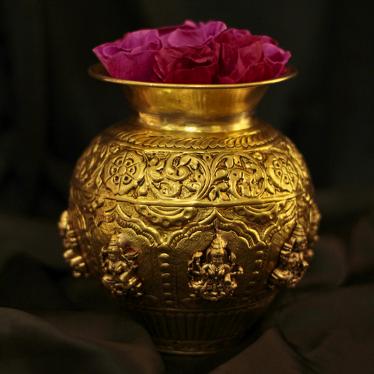 Gold Brass AshtaLakshmi Avatar Kalash | 8 Laxmi Avatar Kalash for Pooja | Divine Kalasham for Wealth & Prosperity | Laxmi Poojan for Diwali