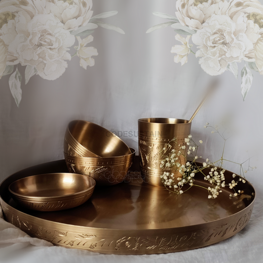 Engraved Kansa Thali Set | Hand made Pure Bronze Dinner Set
