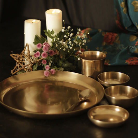 Traditional Kansa Thali Set (10.5 inch -12 inch thali) | Bronze Dinner Set