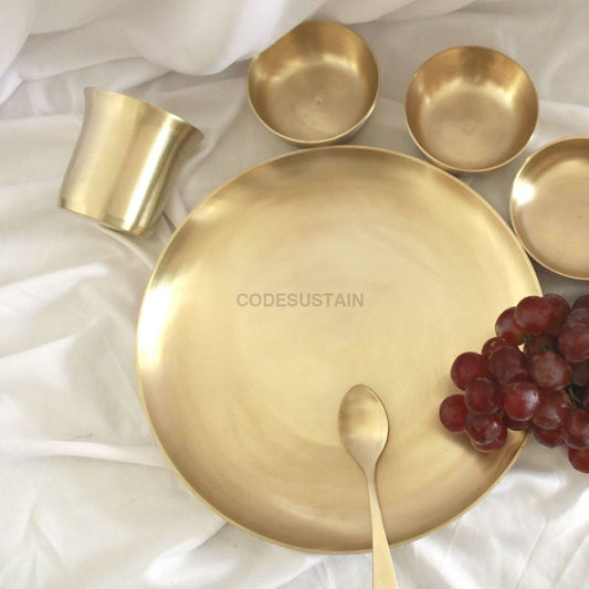 Modern Kansa Thali Set | Contemporary Bronze Dinner Set with Gift box