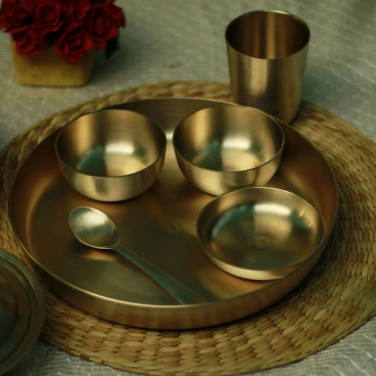 Handmade Kansa Thali Set | Bronze Thali Set | Set of 6 | Gift Box