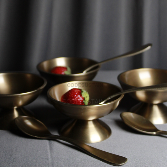 Gold Brass Flower Dessert Bowls | Brass Ice Cream Cups (Set of 2 cups and 2 dessert spoons)