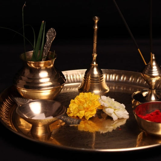 Large Regal Brass Pooja Thali | Pital Havan Bhog Thali