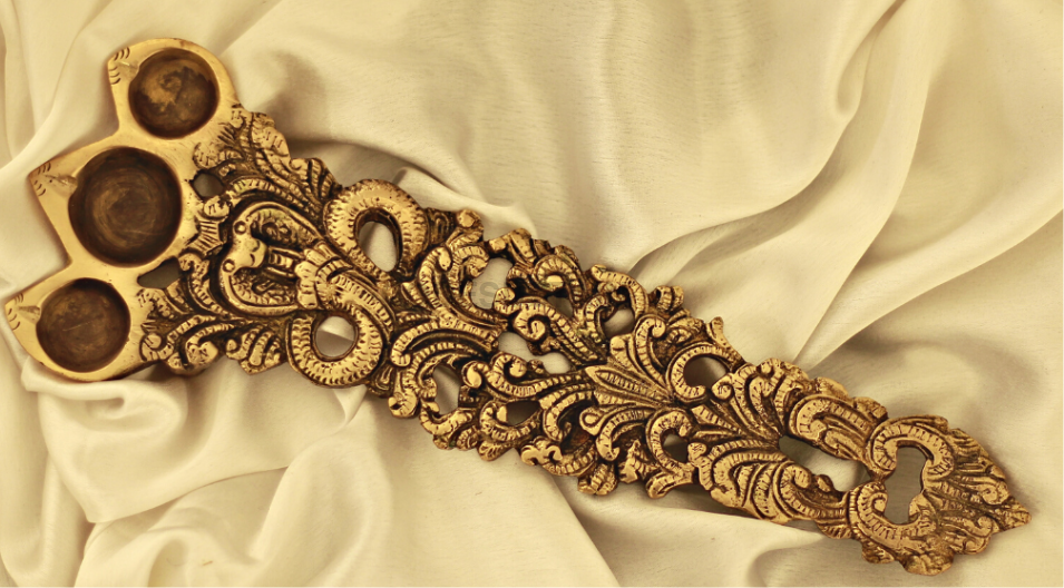 Pack Content - 1 Brass Arti Diya with Handle - Design may vary.