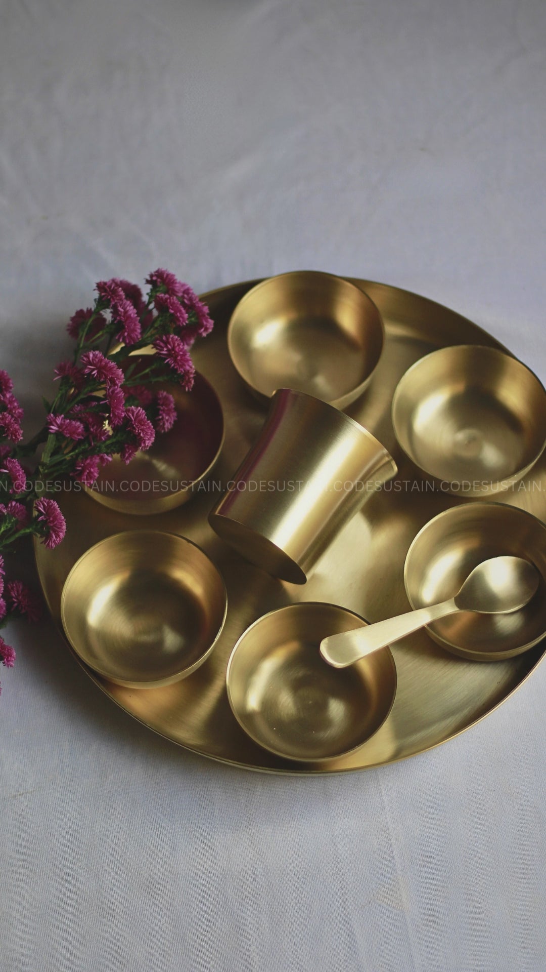 Essence with the goodness of Kansa, our Maharaja Kansa Thali Set is the perfect blend of royalty, antiquity and sturdiness, that sets it apart from any regular thali sets. Popular for its multiple usage in ancient India, bronze utensils are believed to improve skin condition, build a strong nervous system, improve vision, take care of the immune system and hemoglobin and enhance mental capability.