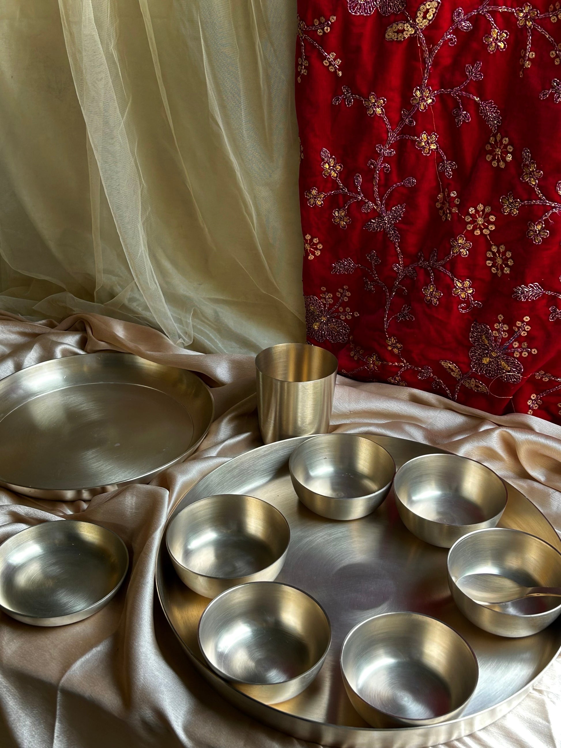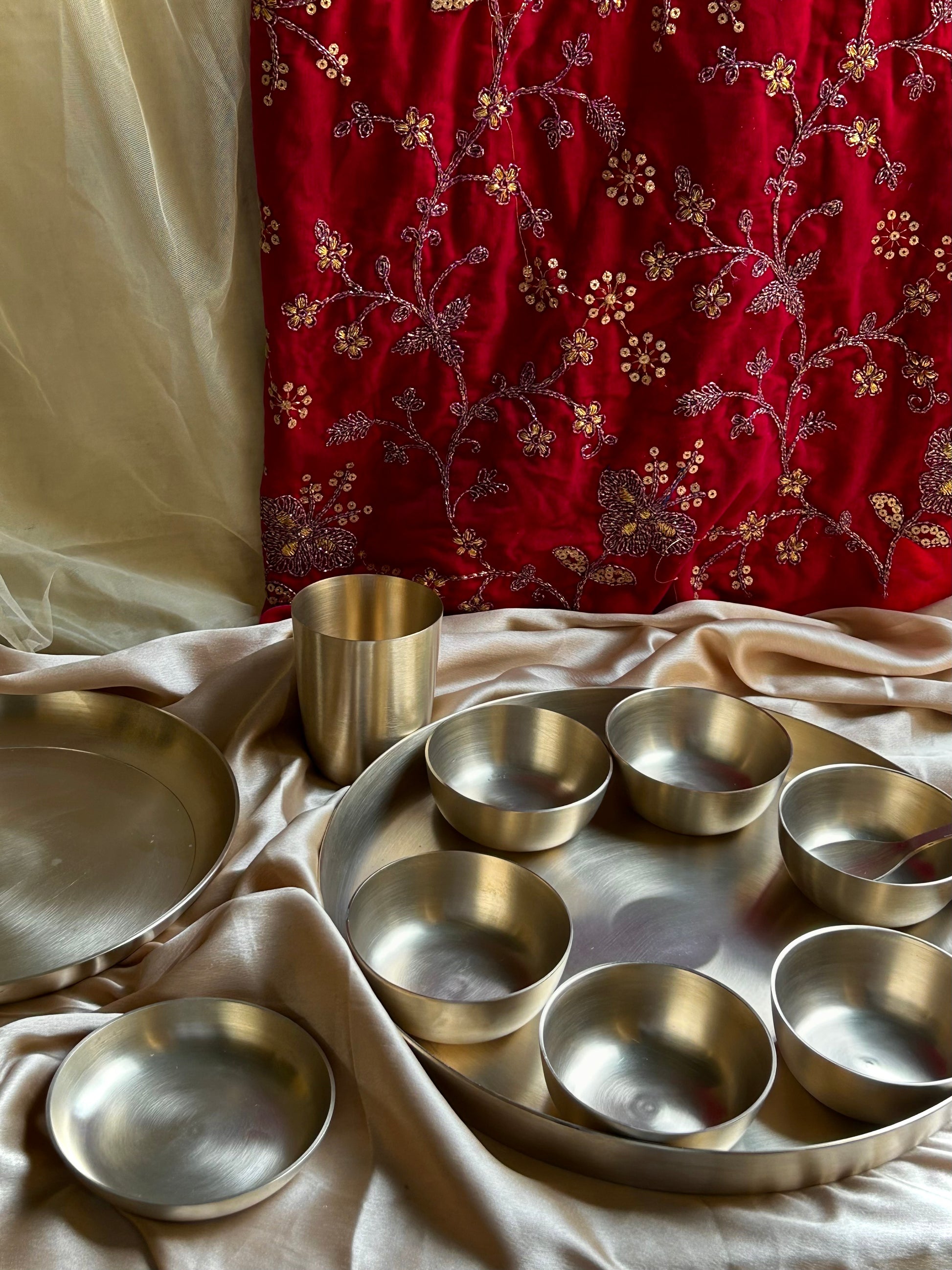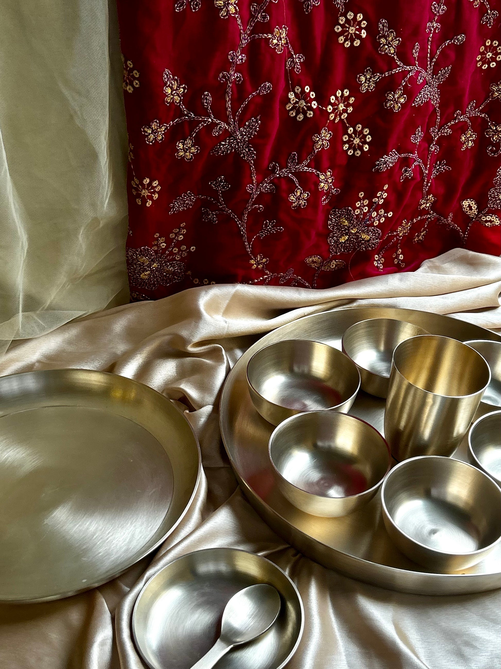 Jumbo Maharaja Kansa Thali Set | Original Kansa Thali Set | Extra Large Bronze Thali Set (1 person set with 11 pcs)